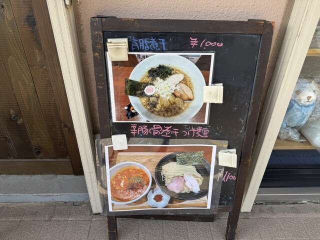 2回目の訪問。限定の豚の背脂つけ麺を食べた。煮干しの香りが非常に強く、濃いめの味付けが特徴的なつけ麺。麺自体にもほのかな香りがあり、スープにつけなくても美味しく楽しめる。スープの油が多めで温度が下がりにくく、最後まで熱々で食べられたのが良かった。食後、和え玉を食べたのは少し失敗だったと反省。スープがたっぷり残っていたので、つけて食べるなら替え玉で充分だったかもしれない。限定メニューはTwitterで公開されているので、次回もチェックして訪問予定。