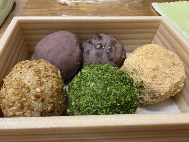 こし餡、つぶ餡、きな粉、青のり、胡麻