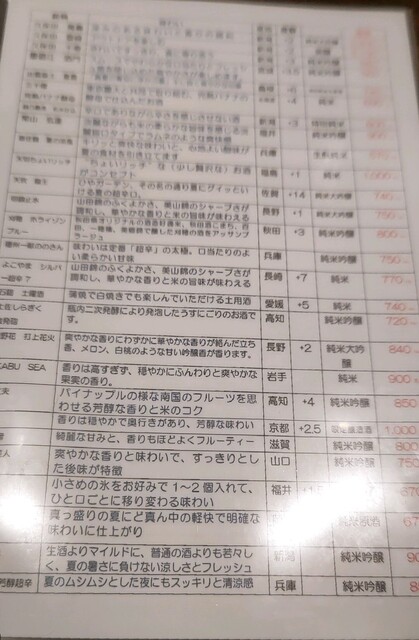 日本酒各種。120mlグラスなので、やはりやや割高。740円と770円。