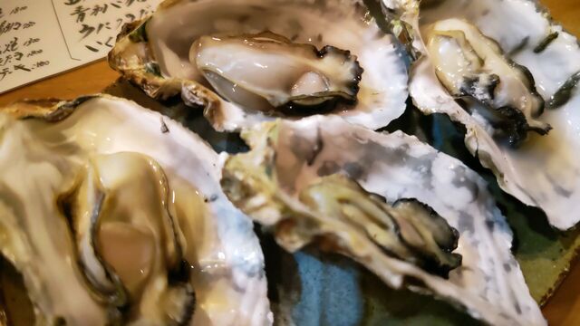 殻付き牡蠣焼き。どちらも旬。
