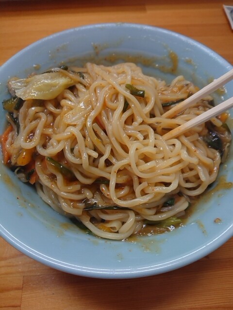 もやしと同じくらいの太さの正方形断面の軽く縮れのある麺は