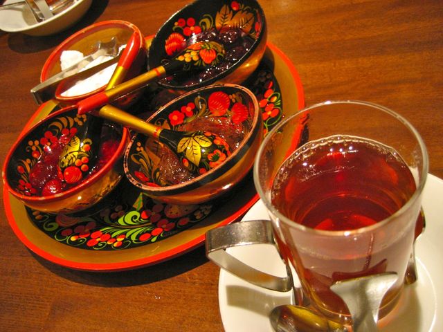 また、ジャムが入れられている食器は、ロシアの民族風な絵付けが可愛い〜(*≧m≦*)