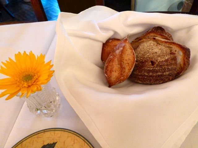 1種はハード系のパンで、温めてあって外はカリカリ中はモッチリ。もう一種は黒パン系の薄切りパン。