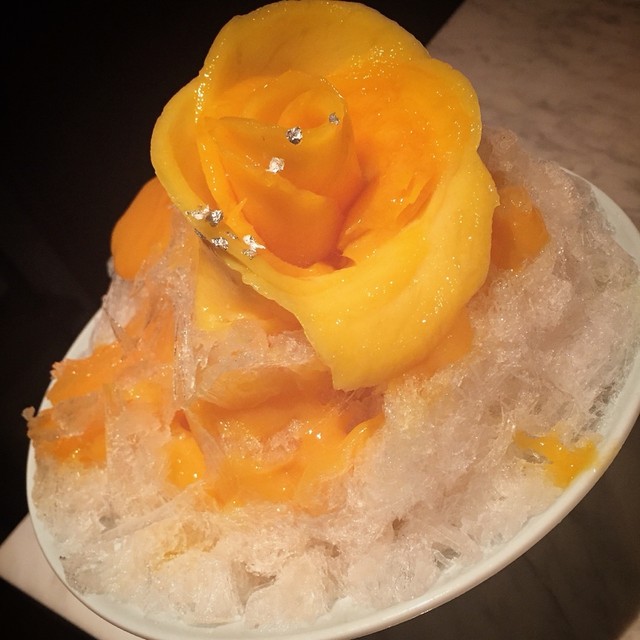 天然氷を使ったマンゴーのかき氷。