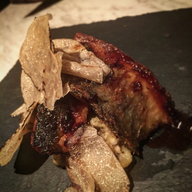 甘鯛鱗焼き干し貝柱ソース、白トリュフと共に 猪のロースト(2種)ビリヤニマサラソース 秋トリュフ 。お肉が少し温かったかな。。