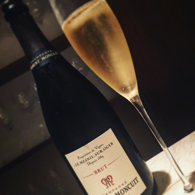このシャンパーニュはピノムニエ、ピノノワールが主体でとても泡立ちが綺麗で見惚れてしまいます。