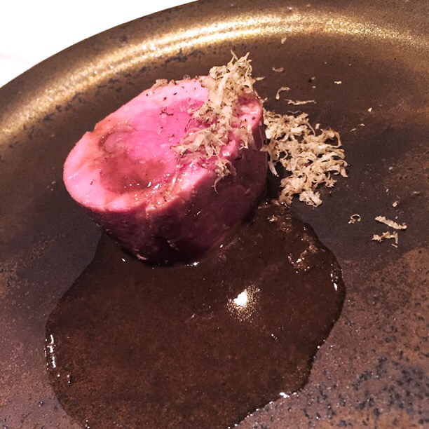 メインは鹿肉。無駄な部分は削りに削り、本当においしいところだけを残すとこんなにも柔らかく、濃厚な味わいが楽しめるんですね!究極の鹿肉でこれまでたくさん食べてきた鹿料理で最も気に入った一品。