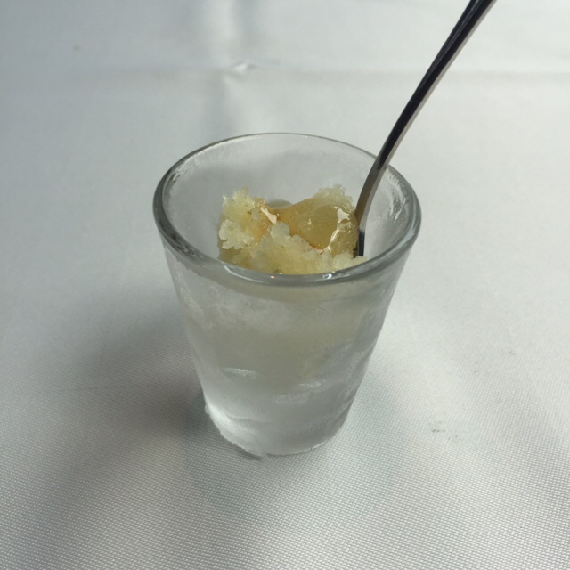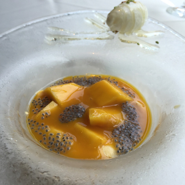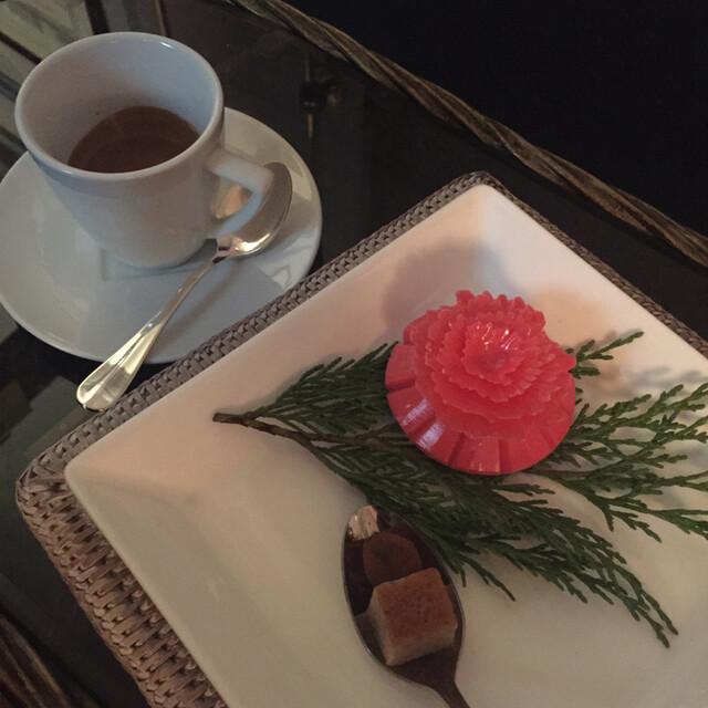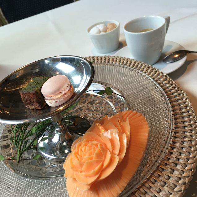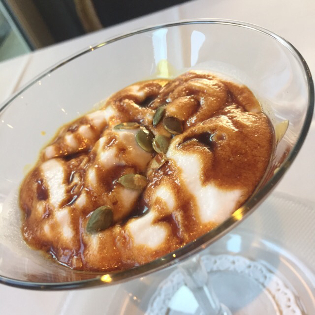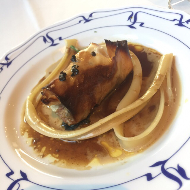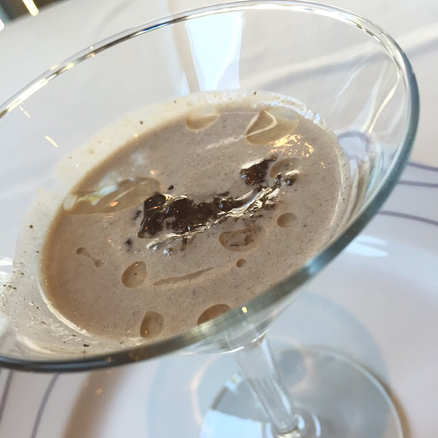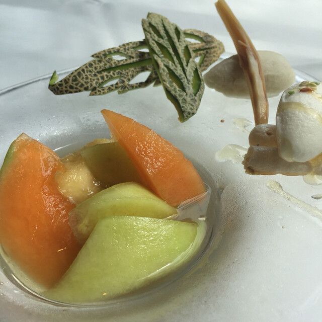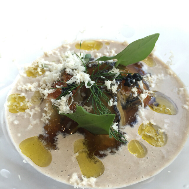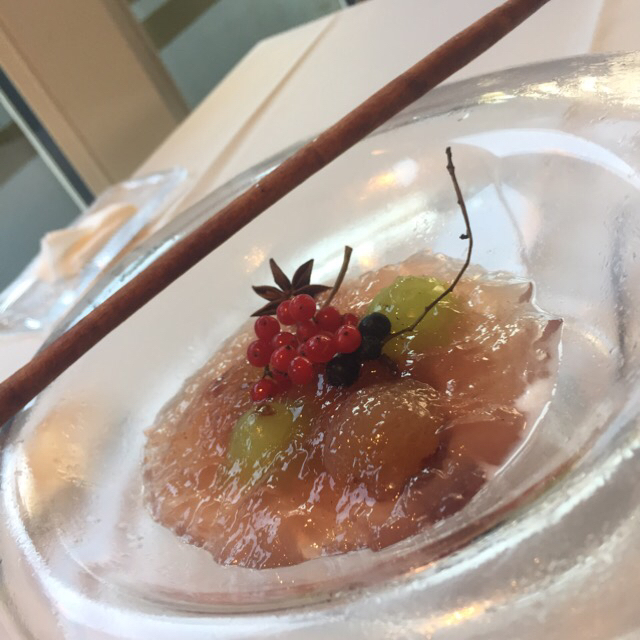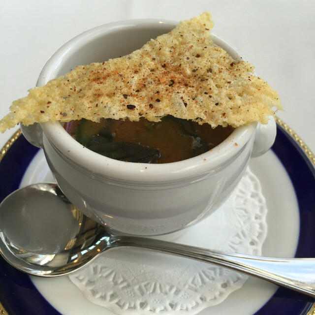 シェフからサービスしていただきました。キジハタのビスクっぽいスープに中に忍ばせたバジルとの相性がとても良かったです。