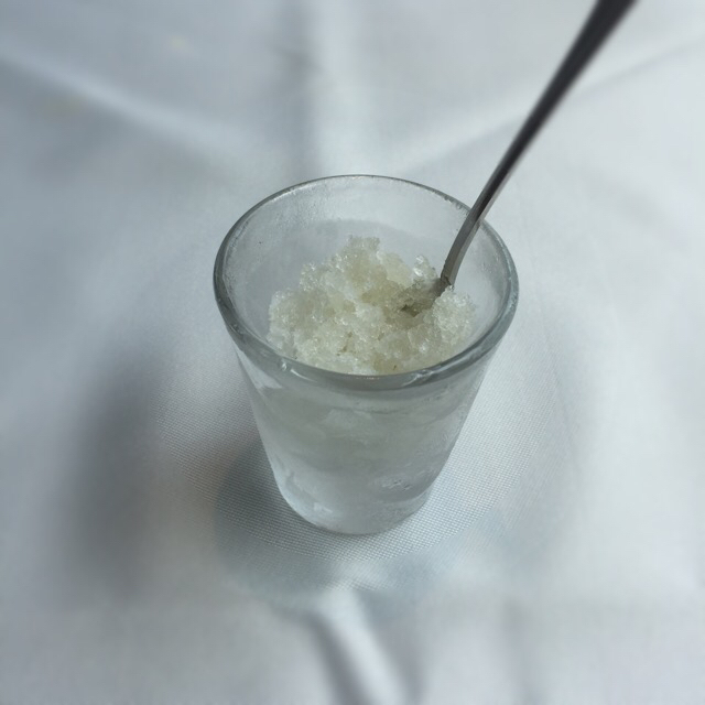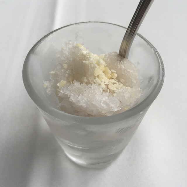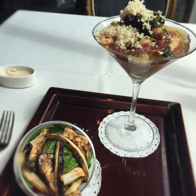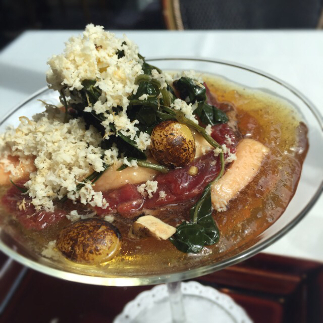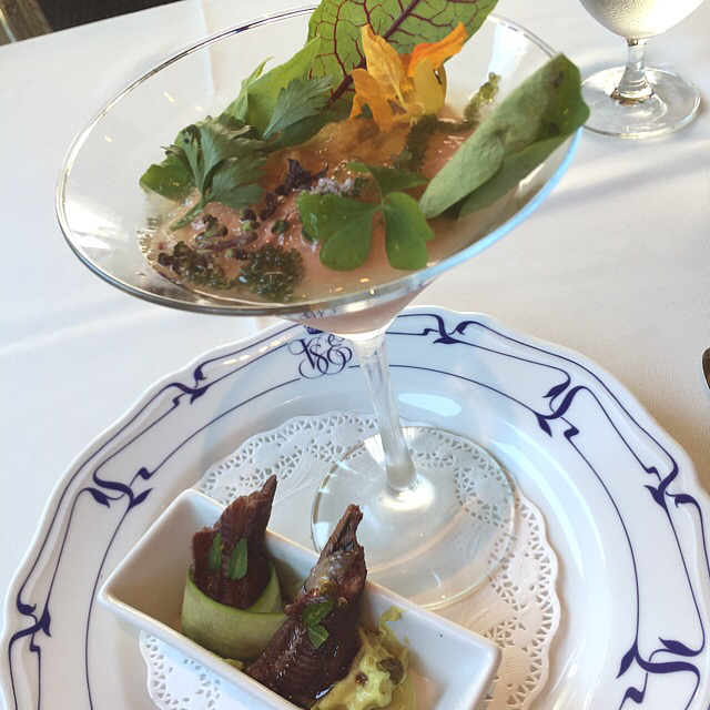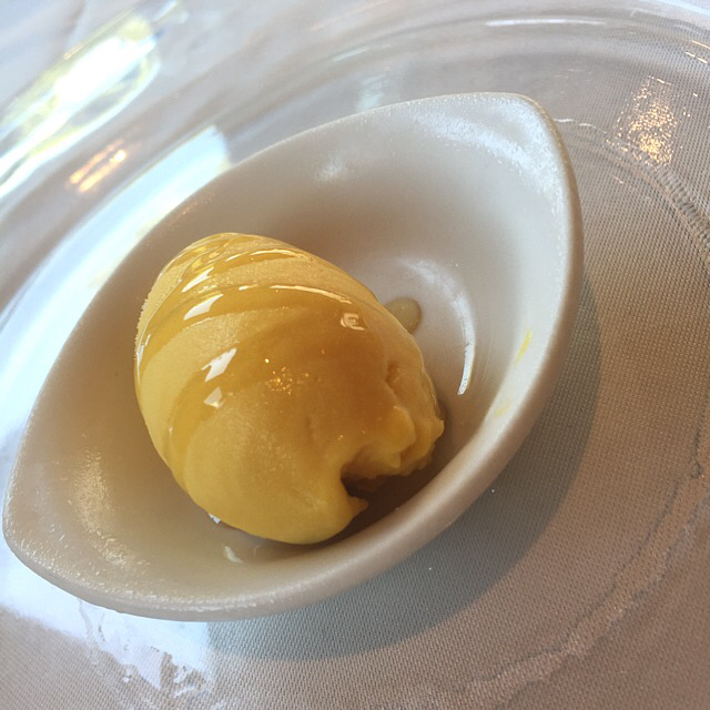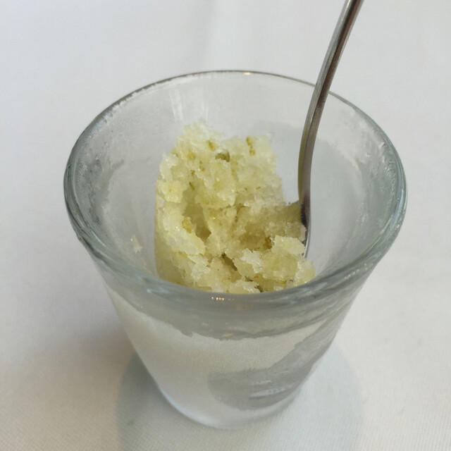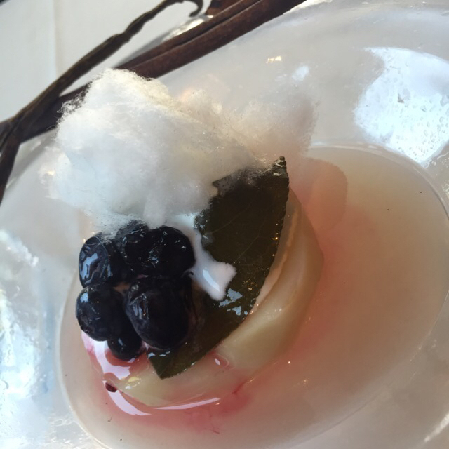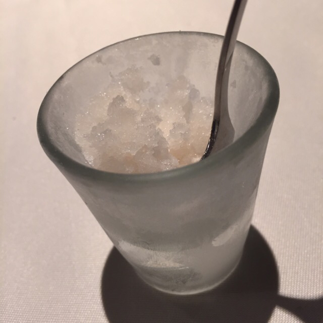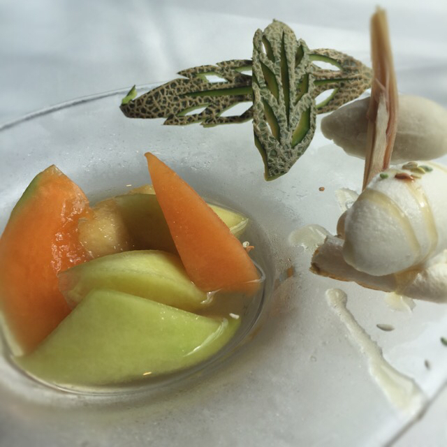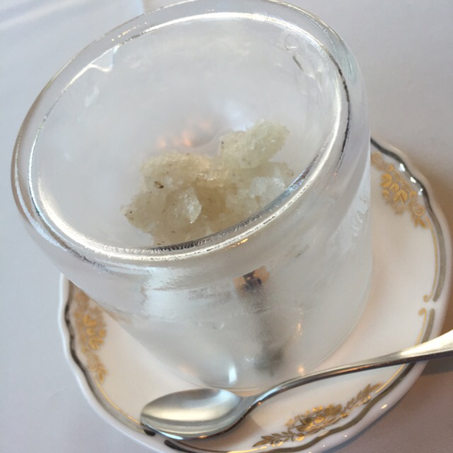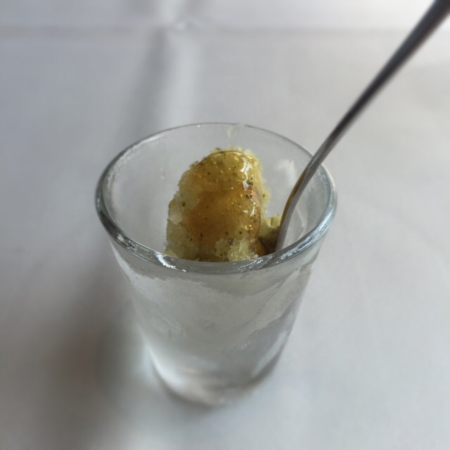 シェフからサービスしていただきました。キジハタのビスクっぽいスープに中に忍ばせたバジルとの相性がとても良かったです。