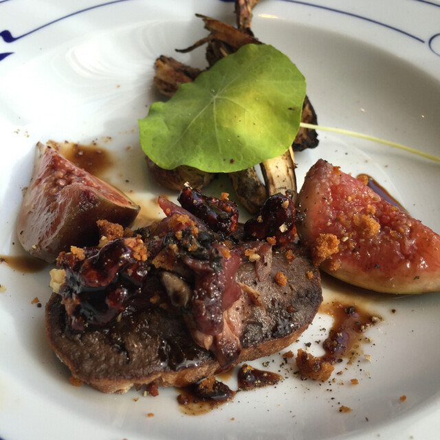次はベカスの内臓とフォアグラでカナッペに。イチジクのポワレも添えて!ベカスを余すところなくいただきます。