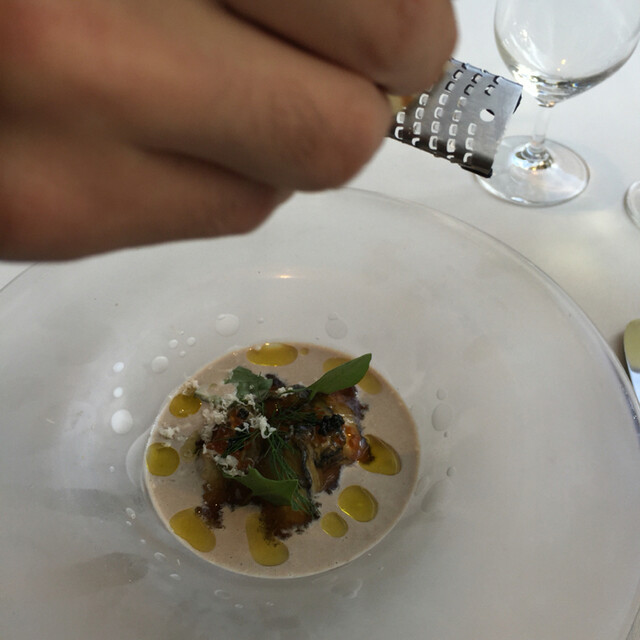 西洋ワサビの香りがマッシュルームとトランペット茸を合わせたナージュのコクと牡蠣の海の香りをさっぱりさせますね!