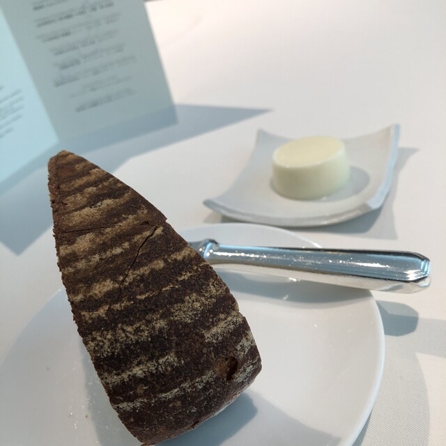 メインは王道のピジョンラミエのトゥルト。所謂パイ包ですね。前回シェフとジビエ好きの話で盛り上がっていたことを覚えていてくれたのか、ジビエをメインにもってきてくれたことに感動しました。シェフご自身でもおっしゃっていましたが、熟成が少し浅いのもあり、ややサッパリ目の味とはいえ、鉄分やレバーのような味わいはしっかりと感じられた素晴らしいお皿。
