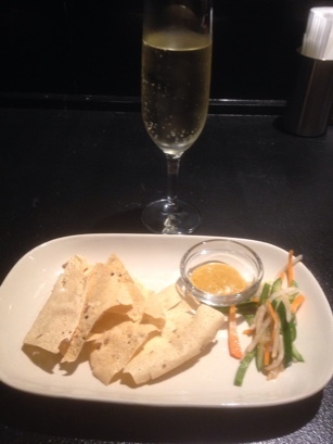 樽生スパークリングワイン、パパド(お通し)