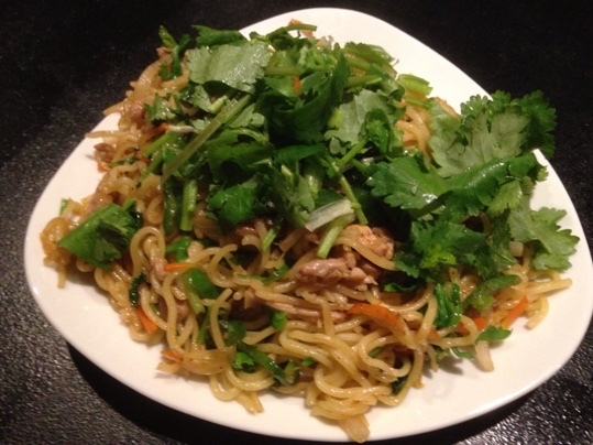 パクチーメニューからはパクチーたっぷり焼きそばを初めて食べたのですが、ネパールスタイルのチョウミンで、具としてもパクチーが入っている上に、できあがりの上にたっぷり乗せていてダブルパクチー。