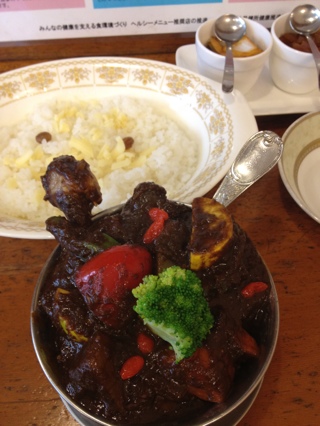 いつものタンカレーに野菜トッピングにしようと思ったら、タンが品切れという事でチキンにしました。