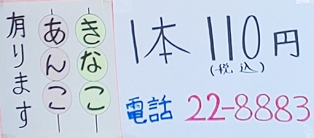 あんこときなこの2種類のだんごは予約がお勧め。