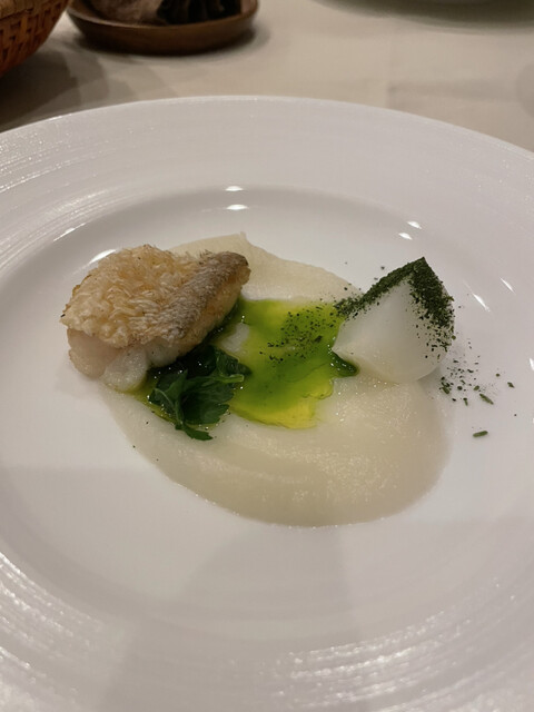 甘鯛の鱗焼きに、かぶらと、かぶらの葉のソース。