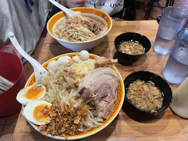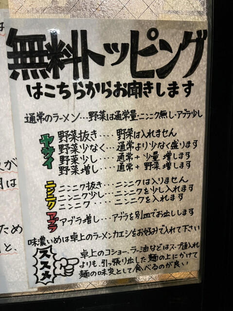 汁無しのトッピングコールは「野菜増し、ニンニク、アブラ増し」