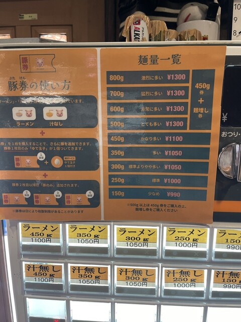 ①『汁無し(350g)』1050円+『豚券』250円+『うずらの玉子』100円