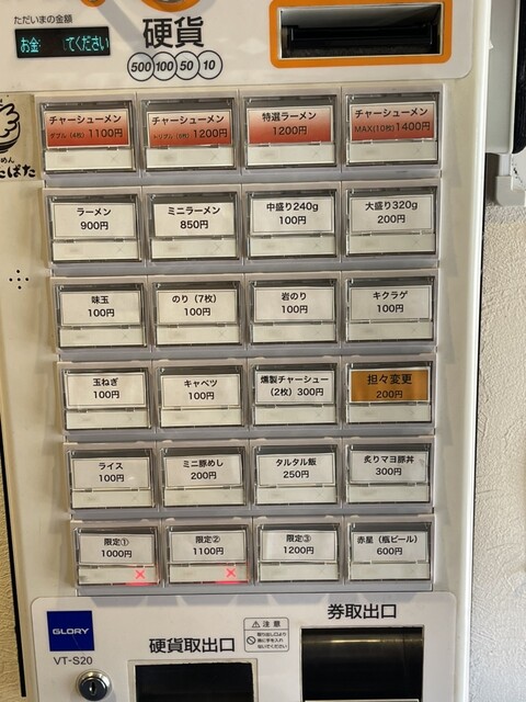 券売機にて『チャーシューメン トリプル(6枚)』1200+『中盛り240g』100円+『のり(7枚)』100円+『ライス』100円の食券を購入。