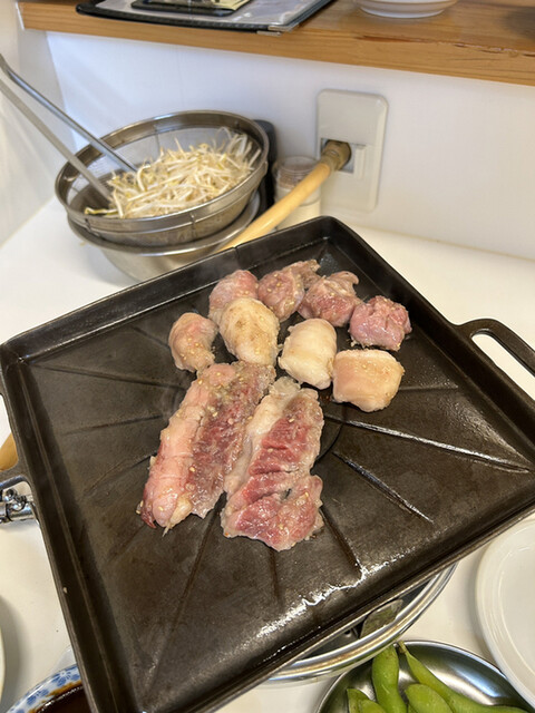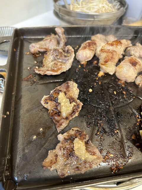 黒い液体が入ったお椀は最初何だろうなと思い、鉄板に溜まった肉の脂を受けるためにセットするようで、果たして?