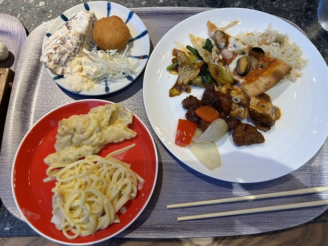 中華コーナーの酢豚、回鍋肉、エビピラフも良かった。残念ながら牛タンの提供はありませんでしたが、牛リブステーキがありました。