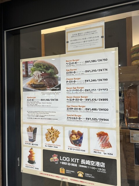 ログキットは佐世保バーガーでも1、2を争う有名店で、長崎空港に支店が出来てからは食べてみたいと思っていたので、迷わず入店。