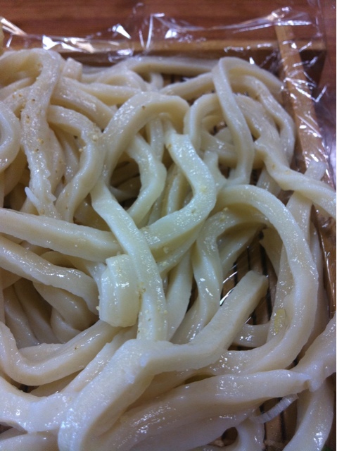 うどんは讃岐うどんの様に白くなく、少しグレーっぽい色をしてます。まずウドンだけ食べて見ると塩味が効いてますが薄目の出汁に良く合います。