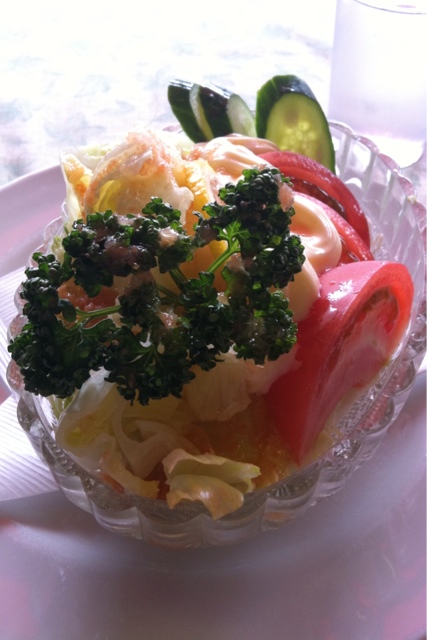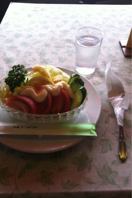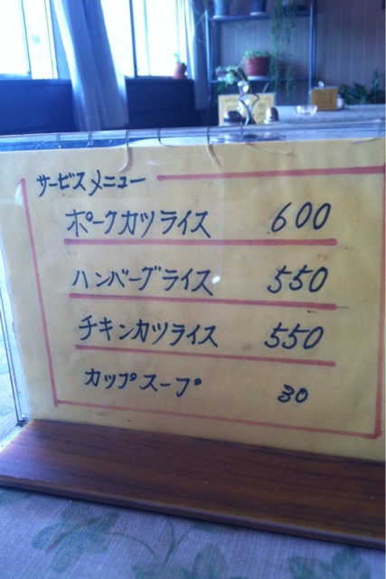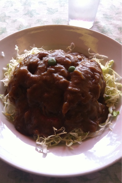 風通しが良く広い店内は、昔はかなりの客で賑わったのではなかろうかと当時をしのばせてくれる。今は無駄に広いようにも思えてしまうが居心地は悪くなく、自分のような懐古主義かつ廃墟マニアチックなおっさんには一見の価値ありなお店ではなかろうか。ご夫婦で営む1968年創業というこのレストランはなかなか本格的な老舗の洋食屋さんといった感じで味も悪くなかった。初訪時はお腹が空いておらず興味本位で入ってしまったため、軽め?にカツカレー(550円)と日頃の野菜不足を補うために野菜サラダ(450円)という何となくツッコミを入れたくなるサラダを注文。カツカレーは何処となくロコモコのような見た目のカツカレーで、決して量的には多くはないが値段も550円とカツカレーにしては安いのでこの日の自分にはちょうど良かった。カツもチキンカツであったのもこれまたこの日の自分的には良かった。カレーは特筆するべき点はなくいたって普通であるが、このチキンカツはかなりサックリとした食感でチキンも柔らかく、なかなか美味しい物でした。サラダも涼しげなガラスの皿に盛られた新鮮な野菜のサラダで、ドレッシングも酸味の効いたフレンチのようなドレッシングもなかなかでした。