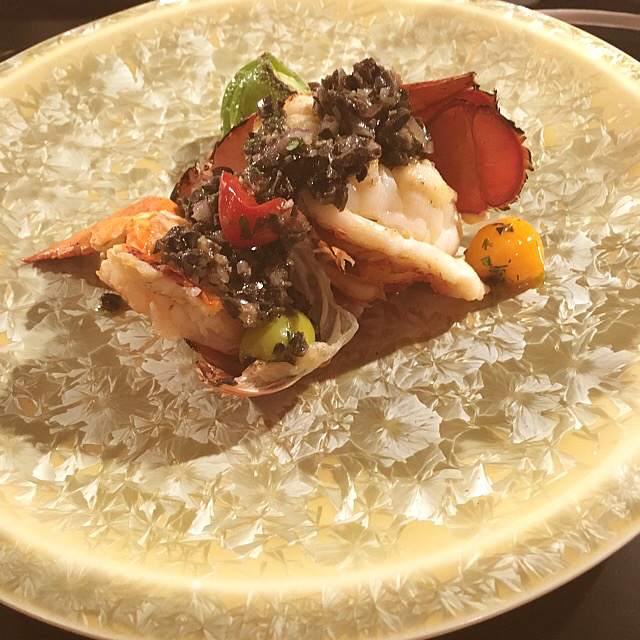 オマール海老のソテーはオリーブをきかせてぷりぷりの海老が最高。