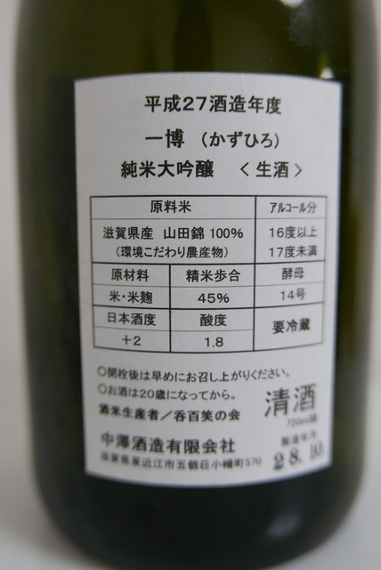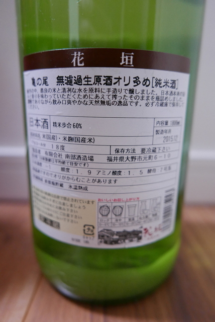 琵琶の長寿(蔵人)新酒 純米吟醸