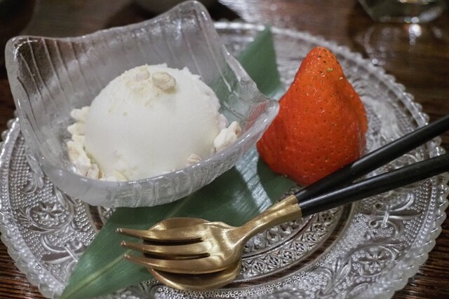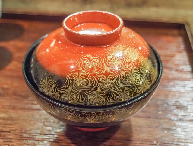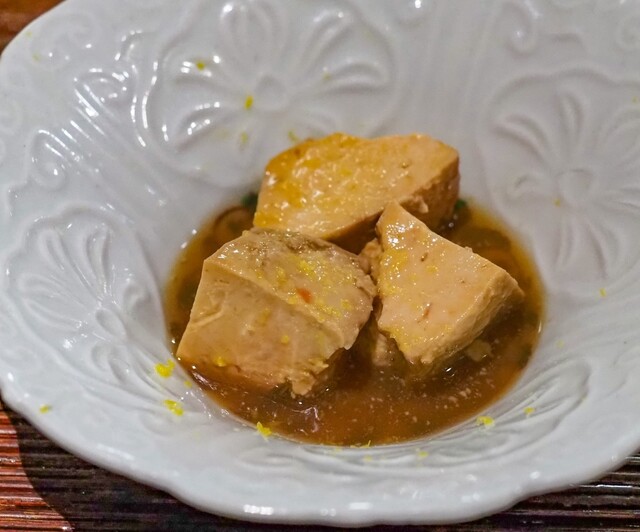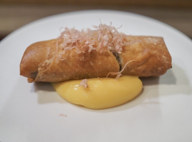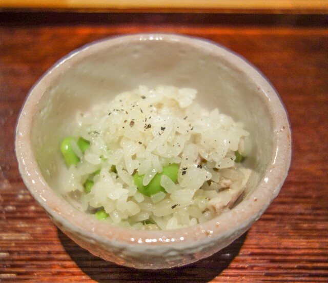 ○お通し(ホタルイカ茶碗蒸し あおさ餡)