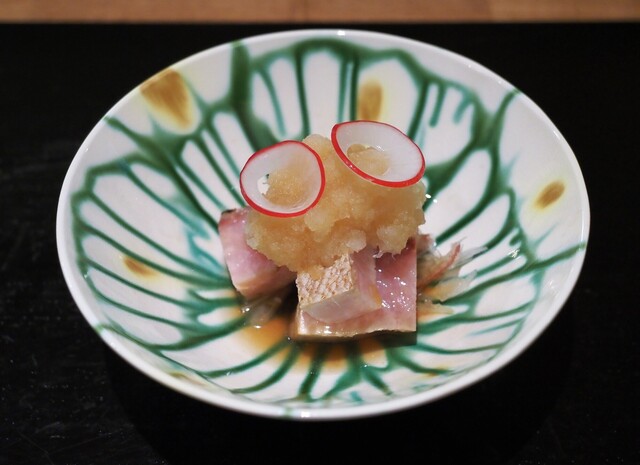 ○蛸、新玉葱、小松菜、土佐酢ジュレ