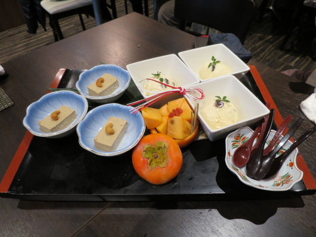 柿、ラムレーズンのアイス、コーヒームースカシューナッツ乗せの盛合せです。