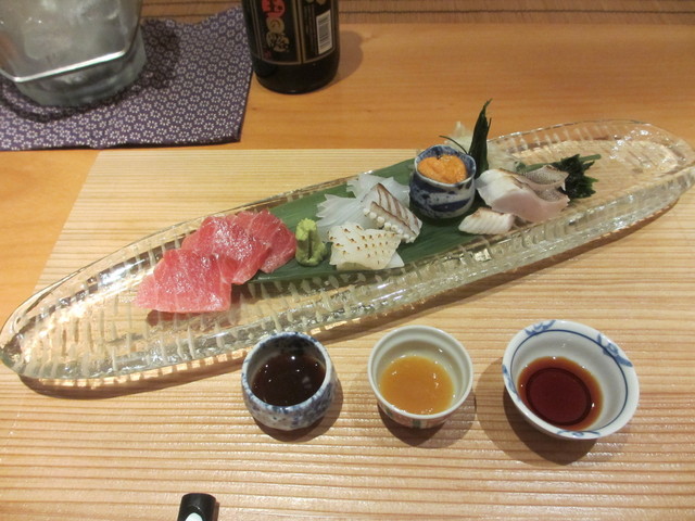 鮪の中トロ、アオリイカの耳と足、水うに、あぶらめ