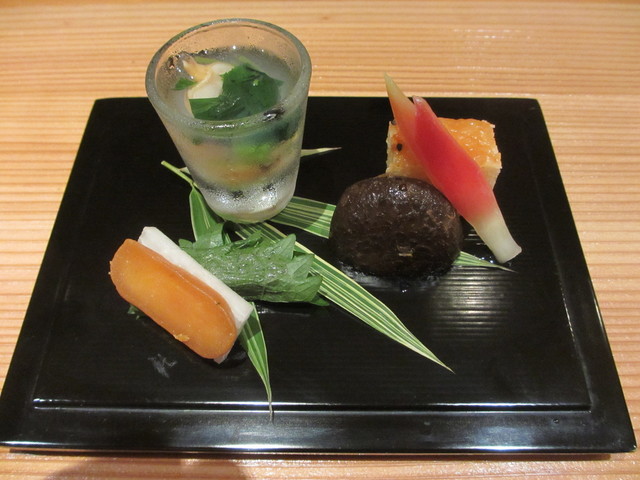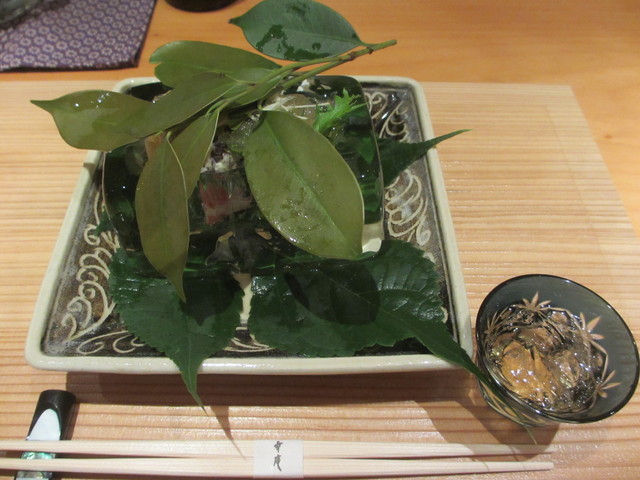 毛蟹、筍、蕗、茗荷、生姜の煮凝り酢掛け