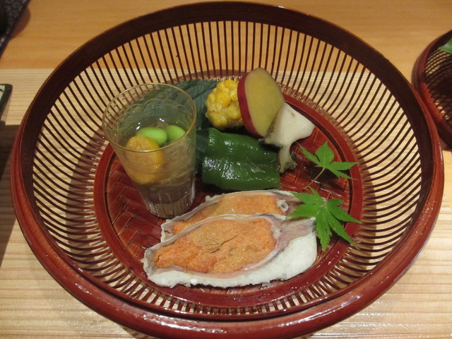 松茸の玉締め 利尻産の雲丹乗せ