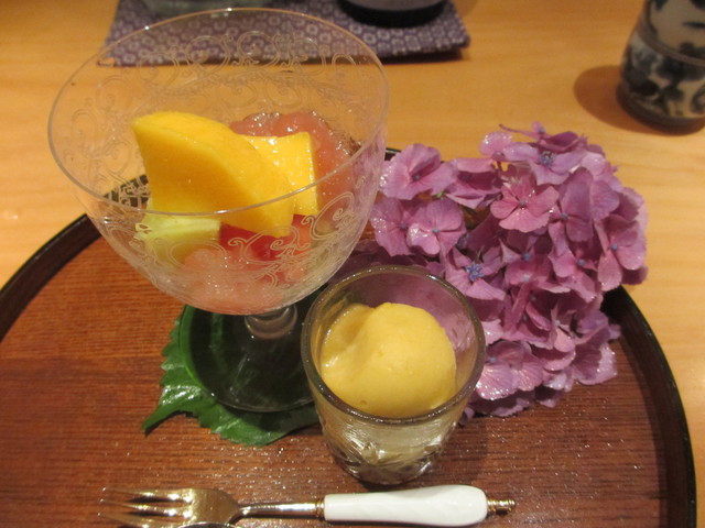 柿、シャインマスカットゼリー掛け、紫蘇のアイス