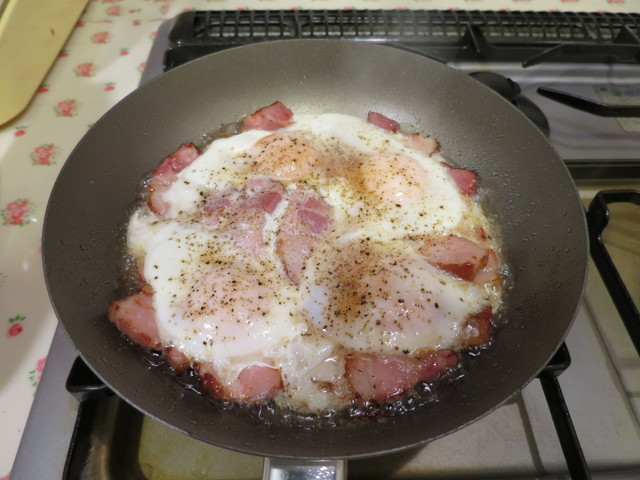 ベーコンエッグ完成間近