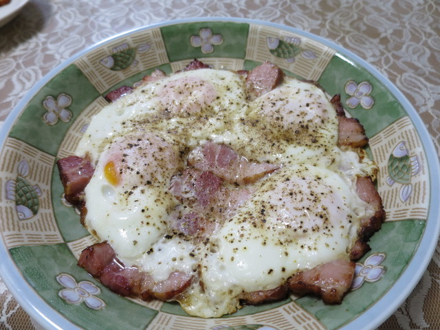 ベーコンエッグ完成!
