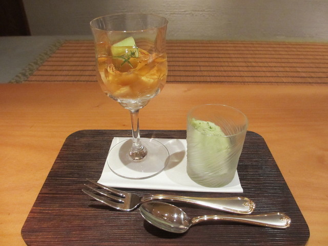 メロンと桃にブランデーゼリー、紫蘇のアイス