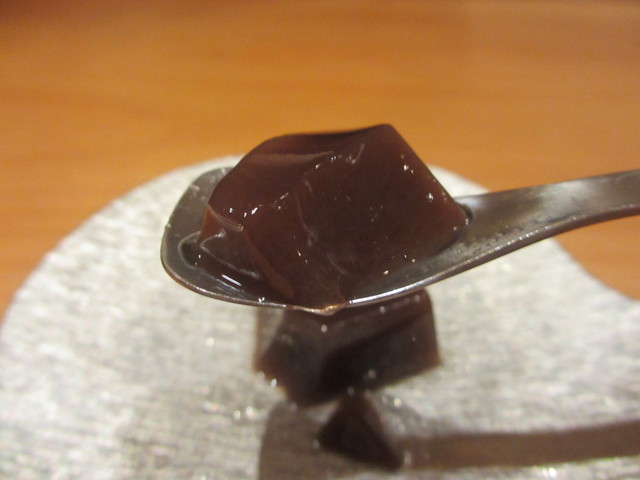 甘納豆を寒天でよせて、黒蜜をかけたもの