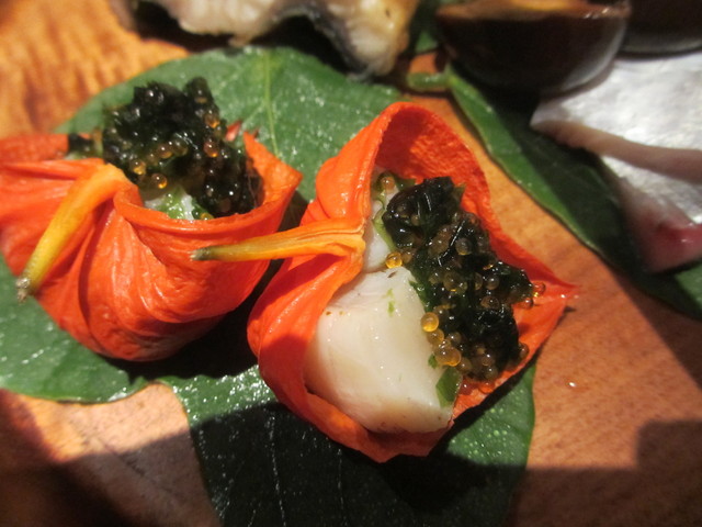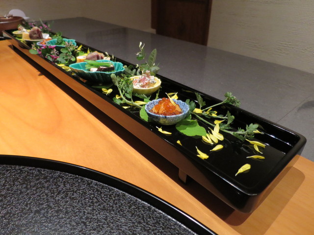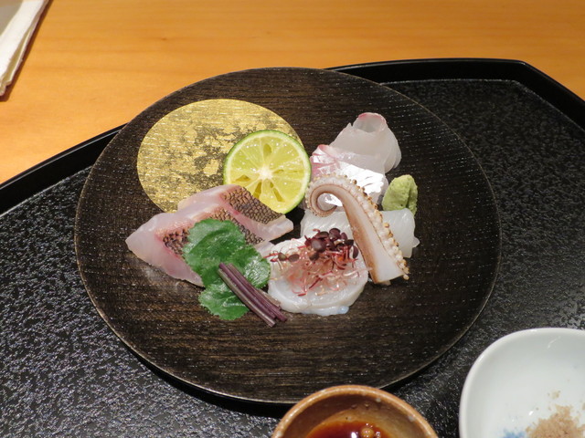 皮目を炙ったイサキ、水蛸、ダルマイカ、鯛