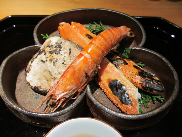 海老、蛤、松葉蟹の焼物