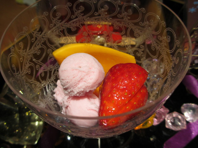 とちおとめのアイス、マンゴーとコアントローゼリー