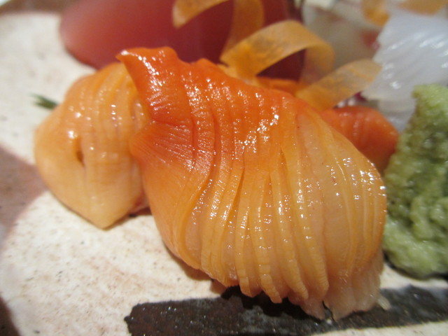 藁で炙った鰹のタタキ、平目、赤貝、赤貝のひも
