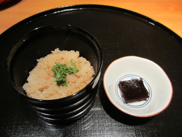 昆布締めにした鯛と実山椒の炊き込みご飯