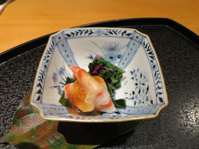 車海老と菊菜の加減酢のジュレがけ