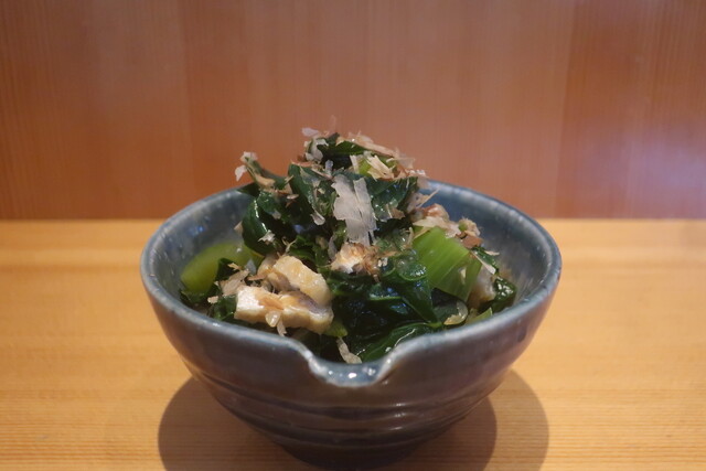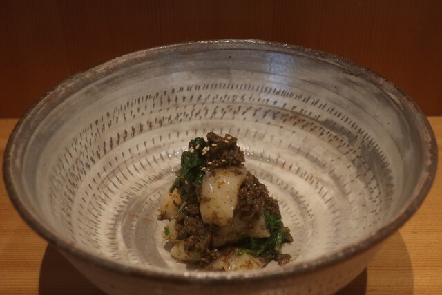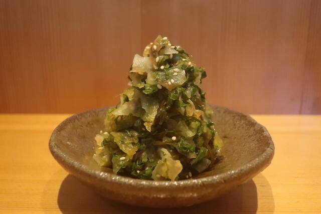 四方竹のシャクシャク食感におかかの旨み。そこに胡麻油のアクセント。