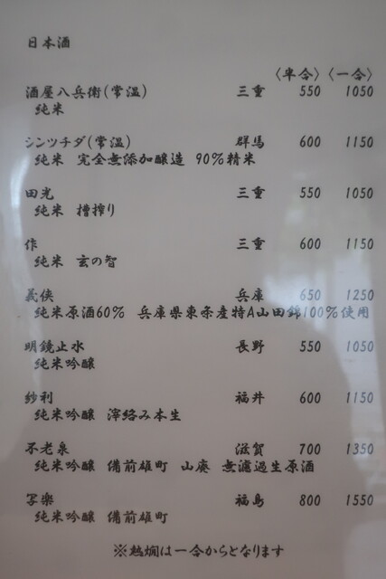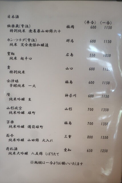 私のオーダーです。いつもの通りご主人と女将さんにセレクトはお任せして。